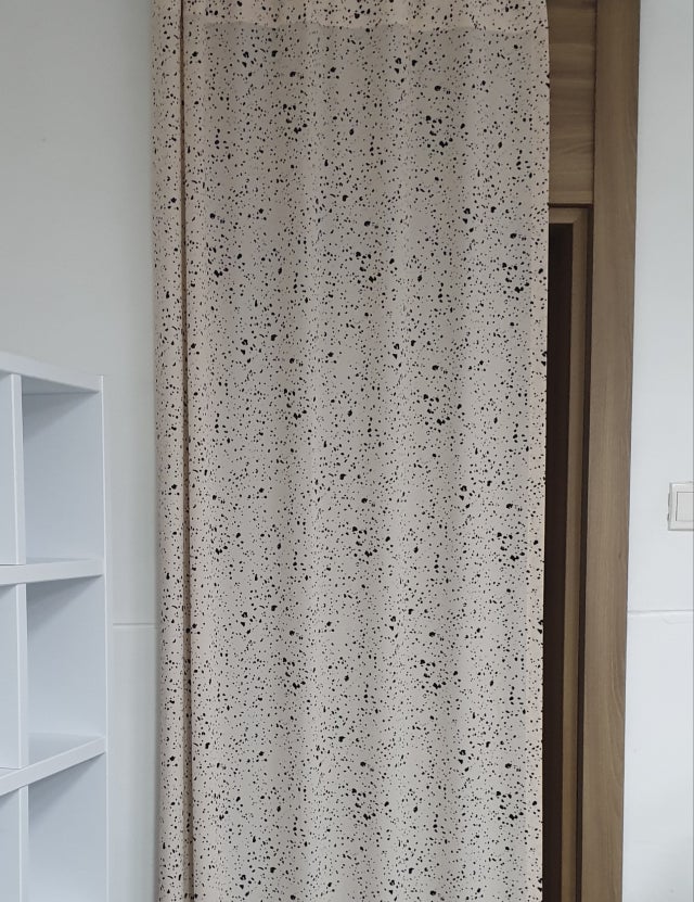 커튼 하나로 또 다른 분위기가 된 거실~ 한눈에 보자마자 딱!! 반했고요 실제로 받아보니 톡톡하고 비침 없는 원단이라 더 맘에 쏙 들었어요. 완전 화이트에 블랙이 아니라 예쁜 베이지컬러에 블랙 스플래쉬 패턴이라 더 고급스럽고 예뻐요!